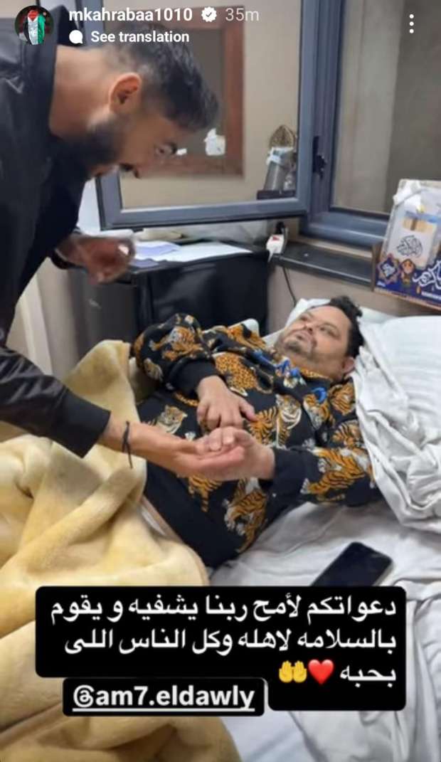 وعلق «كهربا»، عبر حسابه الرسمي على موقع تبادل الصور الشهير «إنستجرام»: «عواتكم لأمح ربنا يشفيه ويقوم بالسلامة لأهله وكل الناس اللي بتحبه».