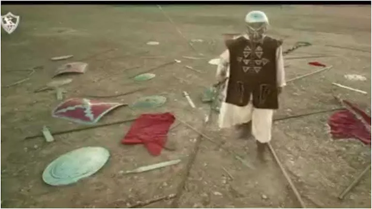 وظهر فيريرا فارسًا يحمل القوس ويطلق السهم ـ رمز القلعة البيضاء ـ ليُسقط علم أحمر اللون أرضًا.