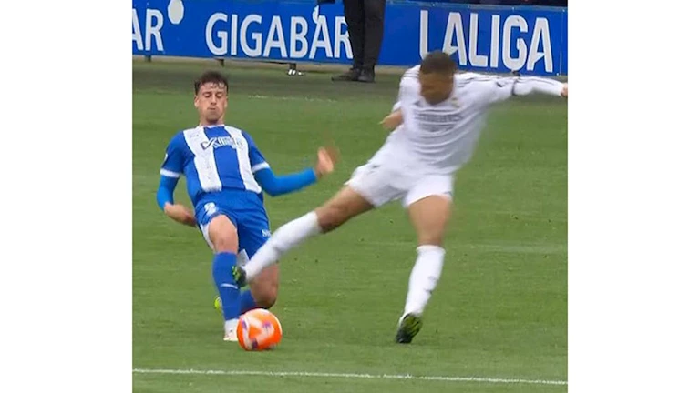 أشهر حكم المباراة بطاقة حمراء للاعب ريال مدريد، كليان مبابي، في المباراة التي تجمع بين ريال مدريد و ألافيس اليوم الأحد 13 أبريل، ضمن مواجهات الجولة الحادية والثلاثين في الدوري الإسباني.