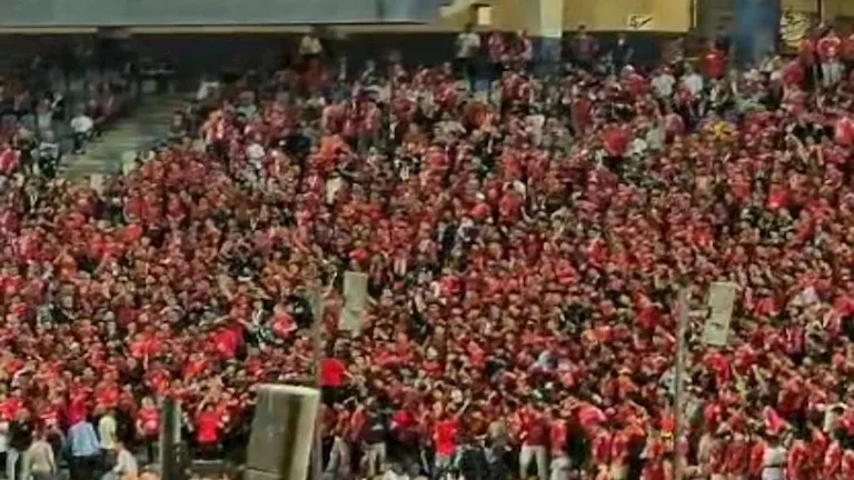 ورفعت جماهير المارد الأحمر لافتة، لتوجيه رسالة إلى لاعبي الفريق جاءت محتواها كالتالي: “تيشرت الأهلي لا يعترف إلا بالرجال، اثبتوا ذاتكم”.