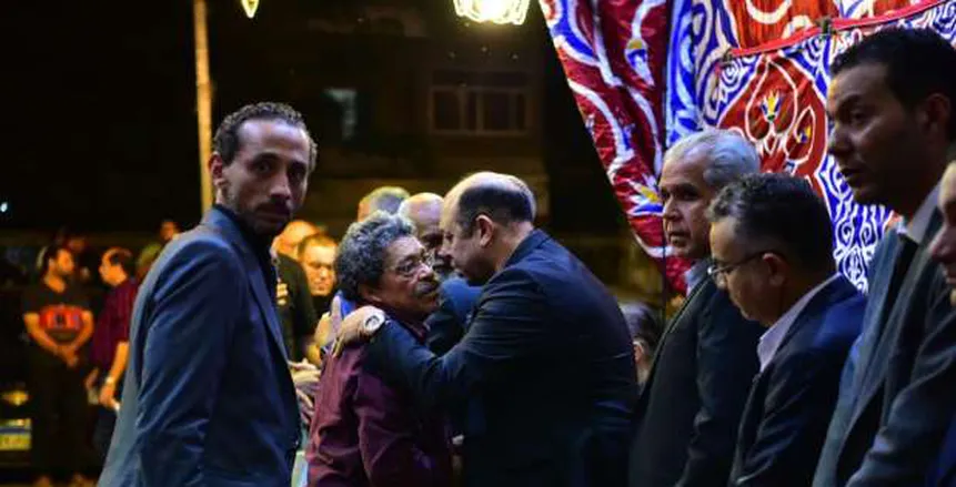 وظهر أحمد سليمان، عضو مجلس إدارة نادي الزمالك، وطارق السيد، نجم الفريق السابق، وممدوح عباس، رئيس نادي الزمالك الأسبق، والإعلامي أحمد شوبير، ومعتمد جمال، نجم الزمالك السابق، ومحمود سعد، نجم الزمالك السابق، وضياء السيد، نجم الأهلي السابق، ومدحت عبد الهادي، ومختار مختار، عضو لجنة التخطيط في النادي الأهلي، وجمال علام، رئيس اتحاد الكرة السابق، مع بداية انطلاق العزاء.