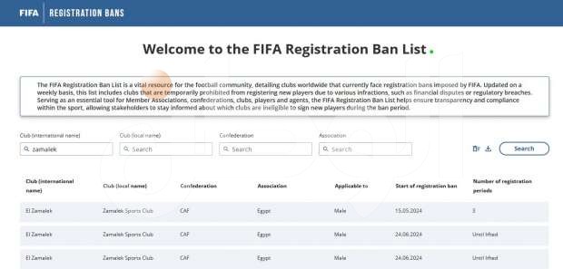 وعلى عكس ما شهدته الأيام الماضية وحصول الزمالك على إنفراجة بعد إعلامه في خطابات رسمية أن قضاياه، التي منعته من القيد ثلاث فترات تم انتهاءها، غير أن الموقع الرسمي لـ فيفا لم يكشف عن هذا الأمر بعد، علما بأنه لا يزال يضع اسم نادي الزمالك ضمن قائمة الأندية المحظورة بتسجيل لاعبين جدد أو صفقات جديدة لمدة 3 فترات مثلما كان الحال في الفترة الأخيرة.