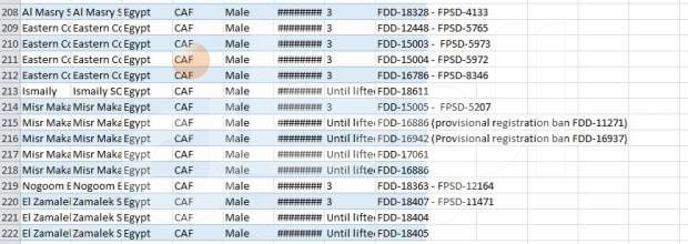 قائمة الأندية المصرية الممنوعة من القيد بقرار فيفا