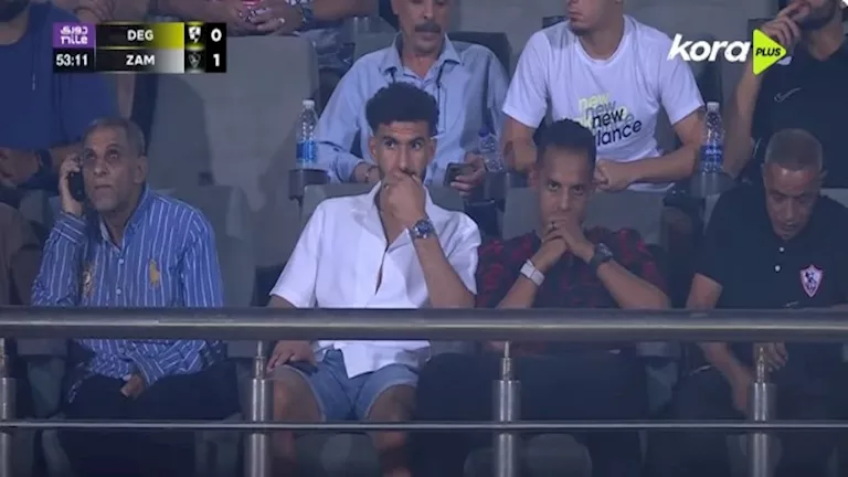 وظهر صلاح عبدالغني، الذي اشتهر بحضوره مباريات الزمالك بـ “الراديو” في المدرجات وهو يجلس بجانب محمد عواد حارس مرمى الفريق المستبعد من المباراة وحضر بالمقصورة لدعم الفريق.