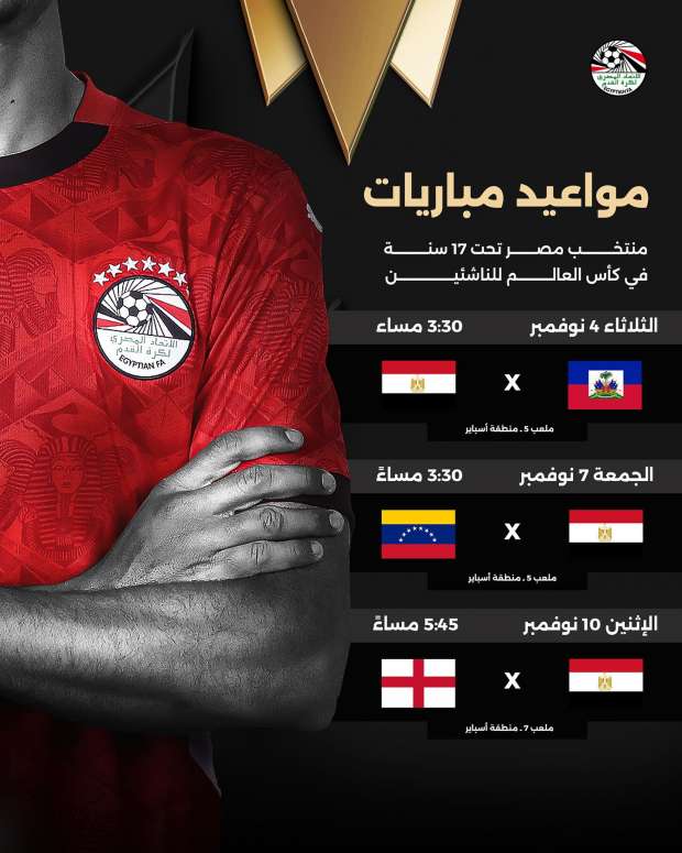 مواعيد مباريات منتخب مصر تحت 17 سنة في كأس العالم للناشئين