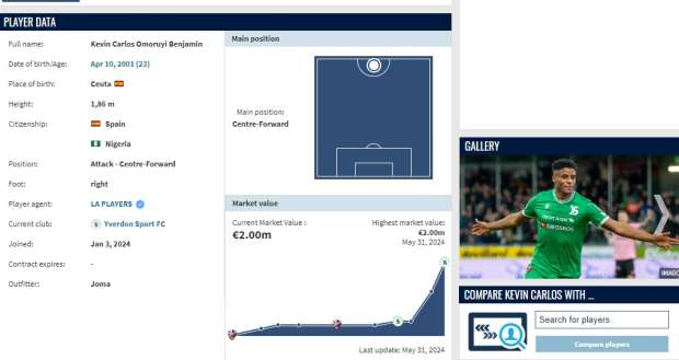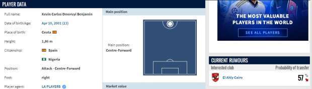حذف موقع ترانسفير ماركت العالمي النسبة المتوقعة لانتقال كيفين كارلوس مهاجم فيردون سبورت بالدوري السويسري للنادي الأهلي، بعدما ترددت أنباء عن دخول القلعة الحمراء في مفاوضات جادة لضمه.
