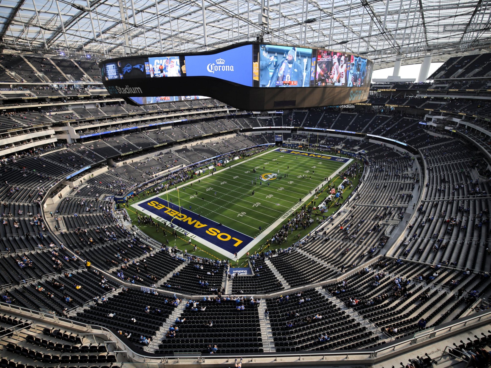 يستعد ملعب “سوفي” الذي يتسع لـ 70 ألف متفرج لاستضافة ثماني مباريات خلال كأس العالم، بما في ذلك خمس مباريات في دور المجموعات ومباراتين في دور الـ 32، بالإضافة إلى مباراة في دور ربع النهائي. ويعتبر الملعب مقراً لفريقي لوس أنجلوس تشارجرز ورامز في دوري كرة القدم الأمريكية. الوضع الحالي يثير تساؤلات حول قدرة الملعب على الاستعداد الكامل لاستقبال الحدث العالمي.