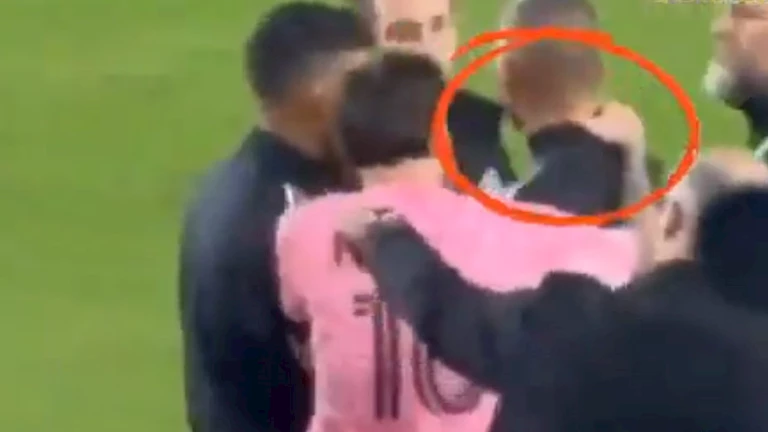 ولم تتوقف الأمور عند هذا الحد، حيث أظهرت اللقطات ميسي وهو يتوجه إلى المغربي مهدي بالوشي، المدرب المساعد لفريق نيويورك سيتي، ويمسكه من رقبته بطريقة غير مقبولة قبل مغادرته أرض الملعب، وسط دهشة واضحة من الجهاز الفني للفريق المنافس.
