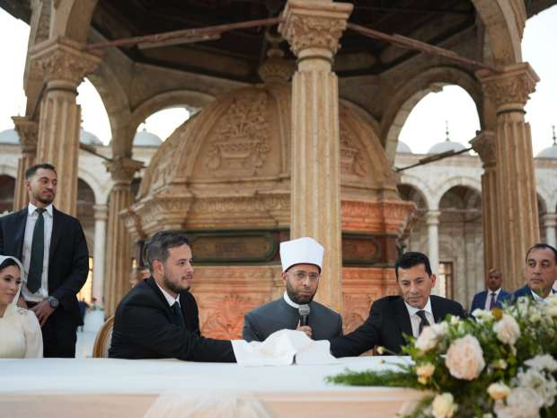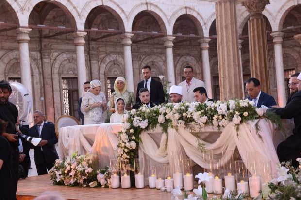 وشهد عقد القران حالة من السعادة بين الحاضرين حيث تم عقده في مسجد محمد علي بالقلعة.