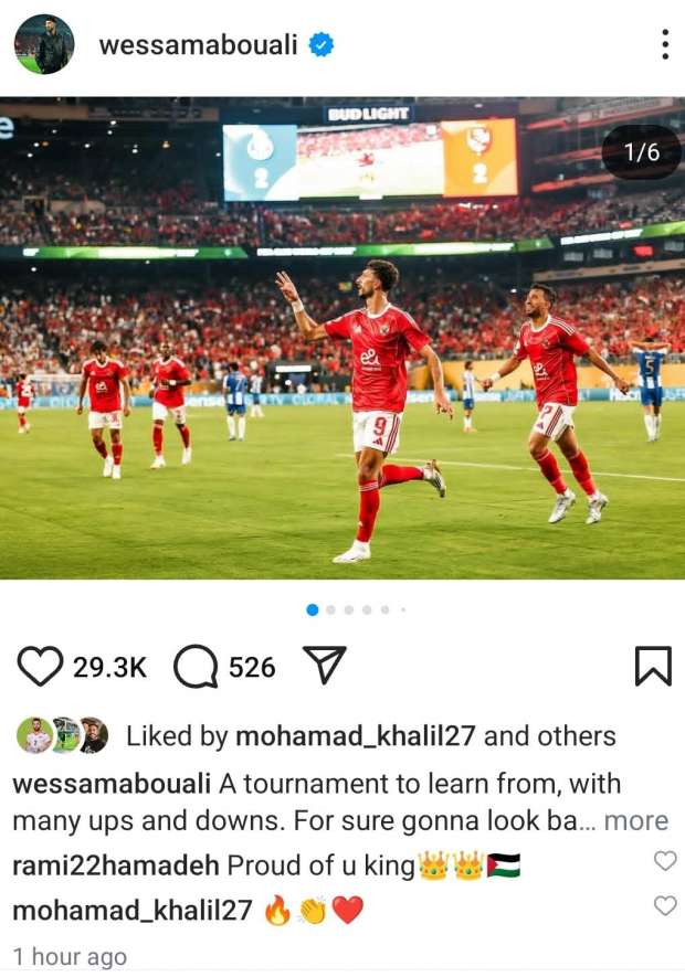 وكتب وسام أبو علي، عبر حسابه الرسمي على منصة تبادل الصور الشهيرة «إنستجرام»: «بطولة نتعلم منها، لقد كانت مليئة باللحظات الصعبة والمفرحة، بلا شك، سأعود لأتذكرها بفخر واعتزاز عندما يمر الوقت».