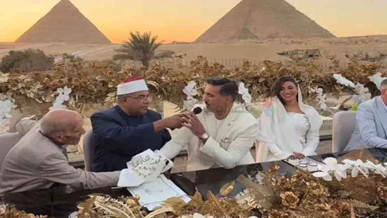 وأقام محمد غنيم اليوم الجمعة، حفل عقد قرانه في أحد الفنادق المطلة على الأهرامات، في حفل بسيط ضم عدد من أفراد العائلة.
