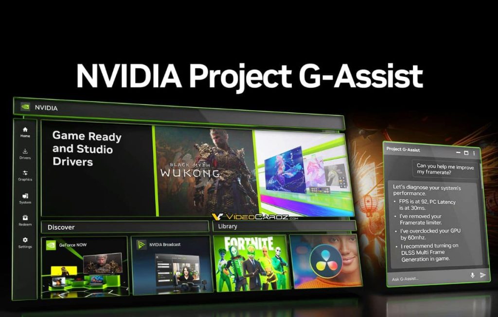 ويتوفر المساعد الجديد داخل تطبيق Nvidia، ويتيح للمستخدمين تحسين إعدادات الألعاب والنظام، وقياس معدل الإطارات، وتعديل إضاءة الأجهزة المتصلة. كما يعمل المساعد الذكي G-Assist عبر الأوامر الصوتية أو النصية، مما يتيح للمستخدمين طرح أسئلة مثل “كيف تعمل تقنية DLSS Frame Generation؟” ليحصلوا على إجابة مفصلة بأسلوب يشبه ChatGPT.