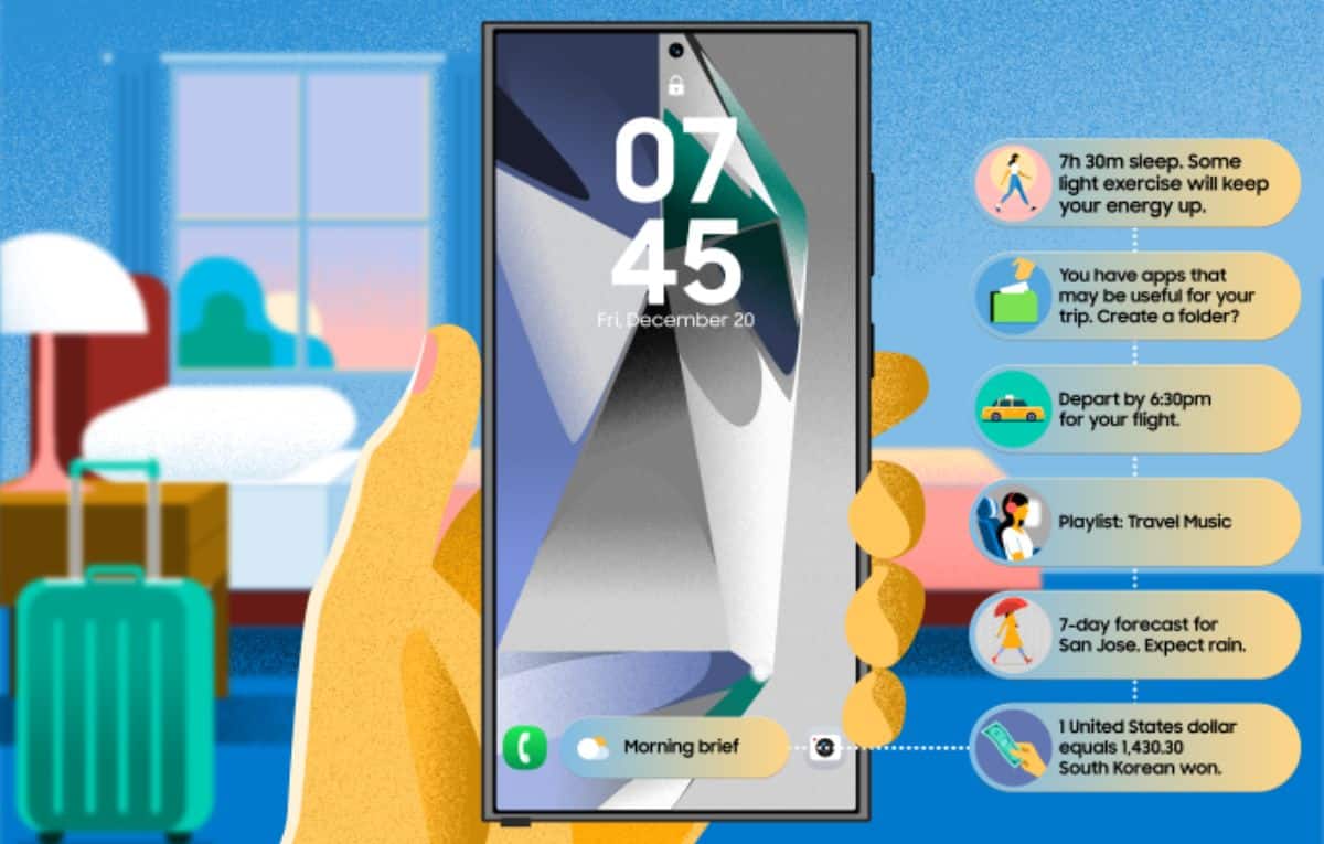 وعلى سبيل المثال: عند الاستعداد لرحلة ما إلى وجهة محددة، فإن ميزة “Now Bar” تقدّم اقتراحًا لإنشاء مجلد يحتوي على التطبيقات الأساسية للوصول السريع إليها، وهي تُذكّر المستخدم أيضًا بموعد المغادرة إلى المطار لضمان عدم تفويت الرحلة، وتوفر قائمة تشغيل مُخصصة تُضفي أجواء مثالية للرحلة، وفقًا لسامسونج.
