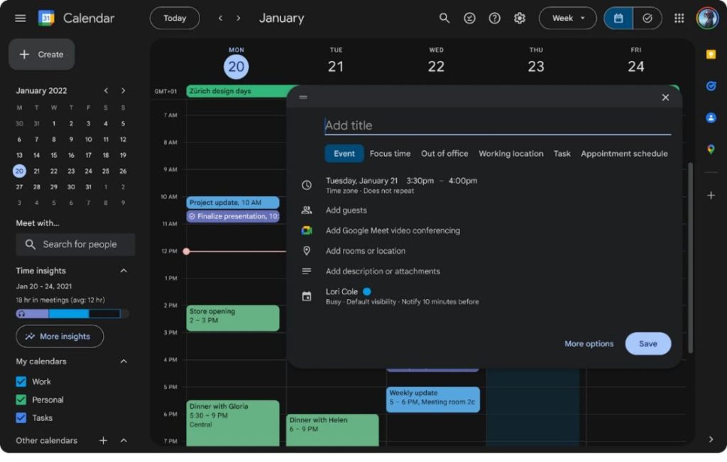 جوجل تحدّث واجهة تقويمها على الويب بتصميم عصري ووضعٍ داكن