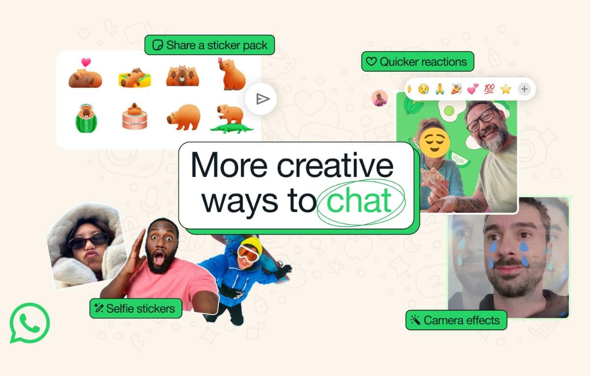 أعلنت شركة ميتا إضافة مجموعة من المزايا الجديدة إلى منصة المراسلة الفورية واتساب، وتشمل تلك المزايا تأثيرات كاميرا مبتكرة، وتحويل صور السيلفي إلى ملصقات، وتفاعلات أسرع مع الرسائل، وخيارًا لمشاركة حزم الملصقات مباشرةً مع مستخدمي التطبيق.