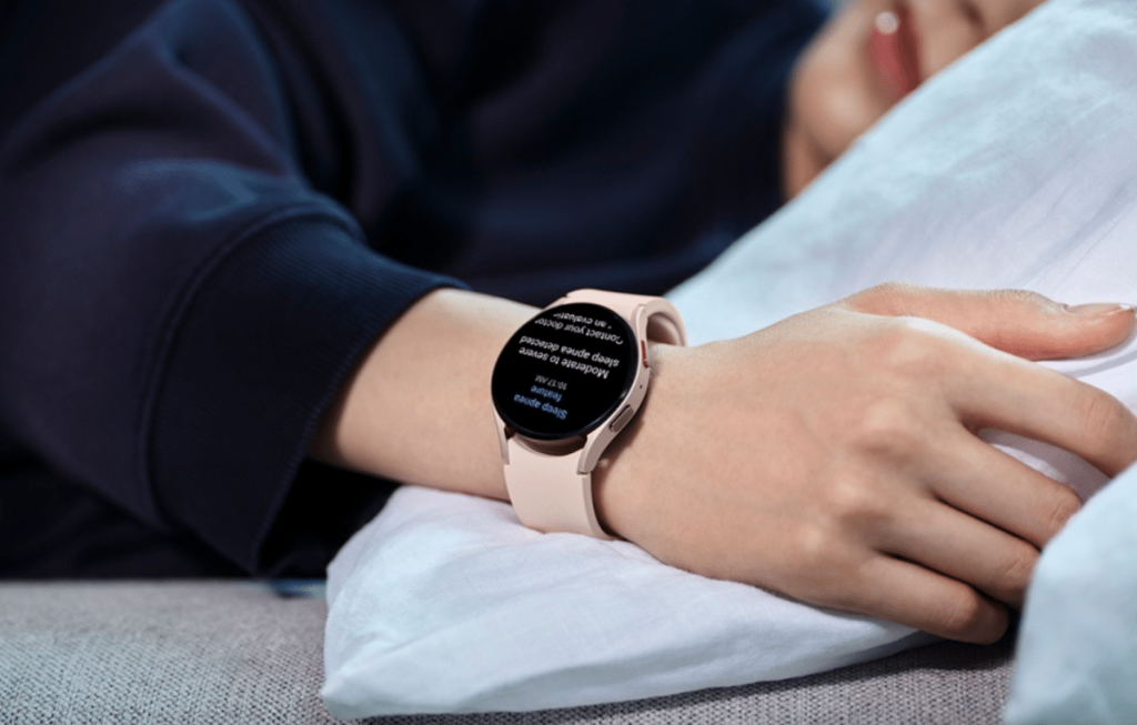 ويمكن لساعة سامسونج الذكية مراقبة مستويات الأكسجين في الدم لدى مرتديها طوال الليل من أجل معرفة ما إذا كانت تنخفض، وهي علامة شائعة على انقطاع التنفس أثناء النوم واضطرابات النوم الأخرى.