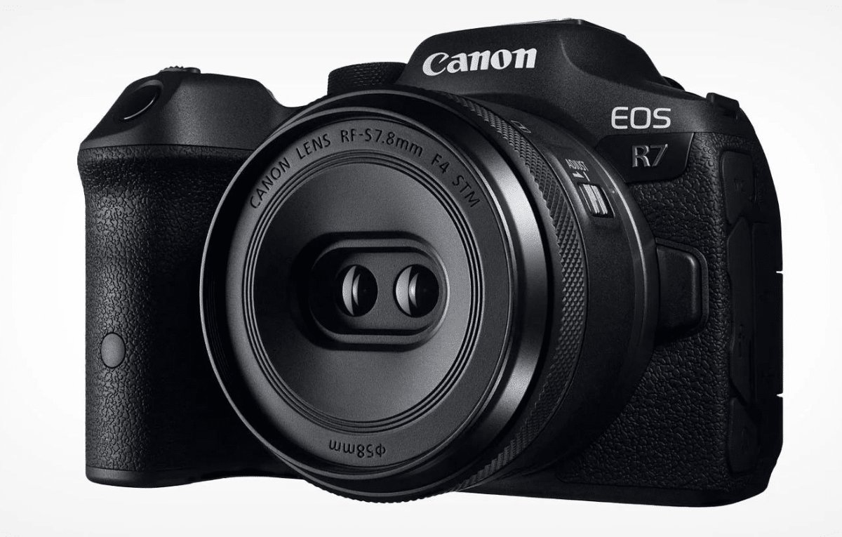 أعلنت آبل في WWDC 2024 أن كانون تصنع عدسة جديدة ذات مظهر غير تقليدي لكاميرا EOS R7، وهي مصممة خصوصًا لإنشاء فيديو مكاني لنظارة الرأس فيجين برو Vision Pro.