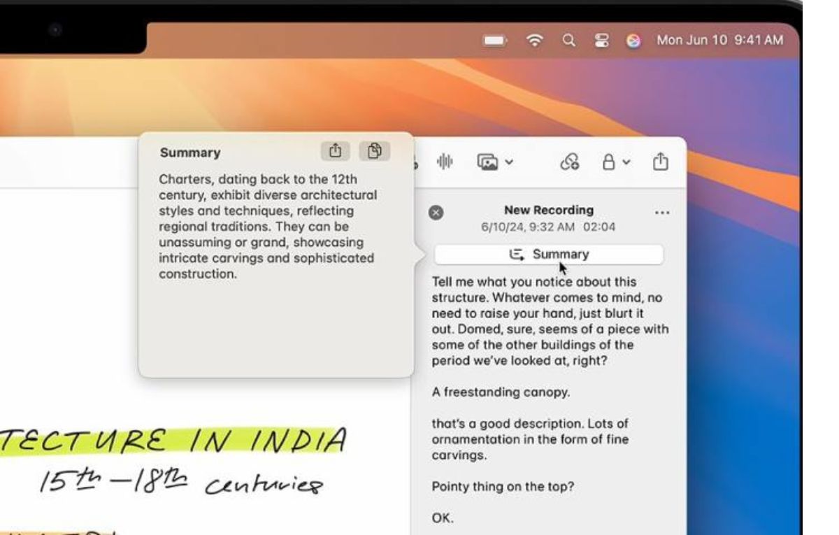 يمكن لنظام الذكاء الاصطناعي Apple Intelligence نسخ التسجيلات الصوتية، وإنشاء ملخصات لها، ولتجربة ذلك اتبع الخطوات التالية: