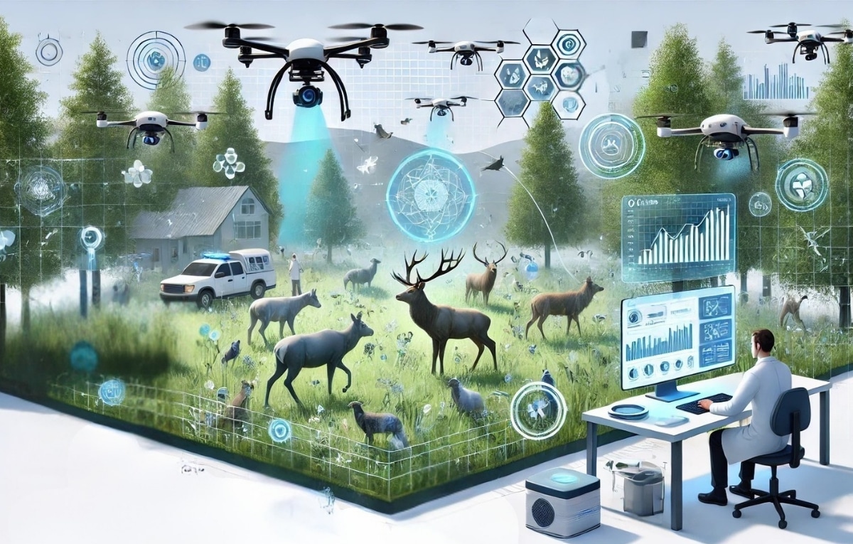 يؤدي الذكاء الاصطناعي دورًا أساسيًا في مكافحة الصيد الجائر باستخدام الطائرات المسيرة وأنظمة المراقبة المتقدمة. إذ تحلل هذه التقنيات البيانات الخاصة بسجلات الصيد الجائر السابقة، وحالات الطقس، والبث المباشر من أنظمة المراقبة، وتساعد الخوارزميات في تحديد المناطق المحتملة للصيد الجائر، مما يتيح للفِرق التدخل بسرعة.