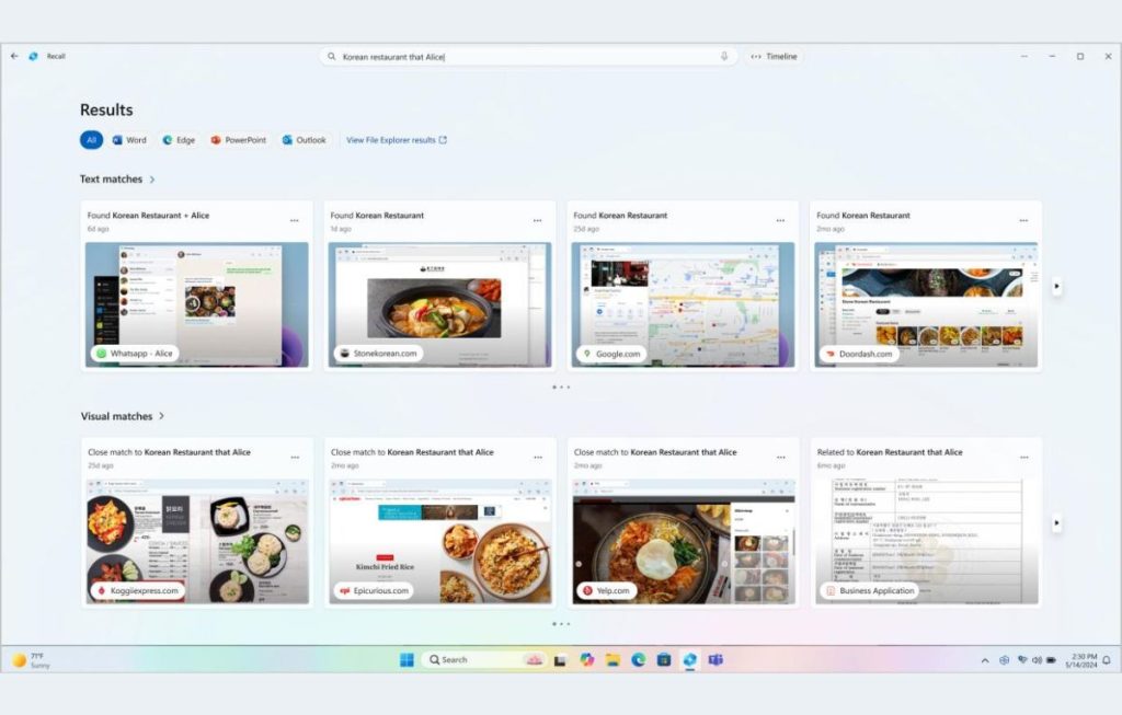 وأوضحت مايكروسوفت أن ميزة “Recall” ستكون اختيارية بنحو كامل، إذ سيتمكن المستخدمون من تفعيلها أو إلغائها بسهولة عبر زرَي “نعم” أو “لا”.