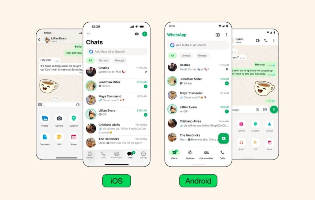 ويتوفر تصميم واتساب الجديد لكافة المستخدمين، ويمكن الحصول عليه بتحديث التطبيق في هواتف آيفون وأجهزة أندرويد إلى آخر إصدار متاح، علمًا بأن التغييرات الجديدة في الواجهة ستتوفر على نحو تدريجي.